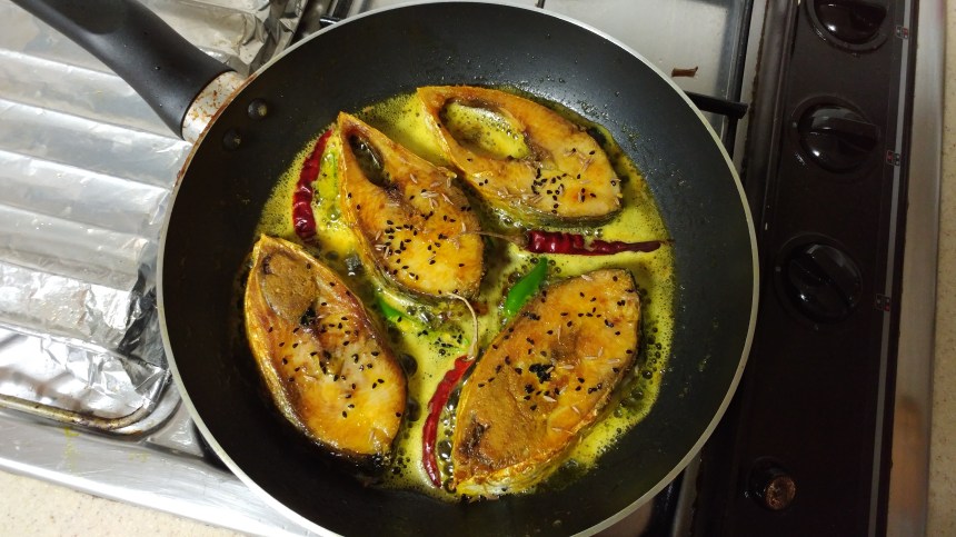 One of the delicacies of bengal.Take mustard oil, heat it till smoky, add 3-4 whole red chillies, and nigella seeds, saute till the aroma develops, add the paste of mustard, yogurt, poppy seeds and green chillies ( all these spices can be adjusted to your taste, I like it more mustardy), give it a boil, add your fish (you can lighly fry it before but if the fish has eggs, need to be careful with it so that it cooks through), put on a lid, after 10-15 on medium heat, it should be done, add slit green chillies to your taste. Serve with hot white rice.